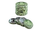 Kompaktní cestovní bong set BREIT – mini skleněný bong s kickhole, 2dílný grinder, kovová dýmka Pure Pipe, náhradní sítka a čističe – vše v originální rastafarijské plechovce.