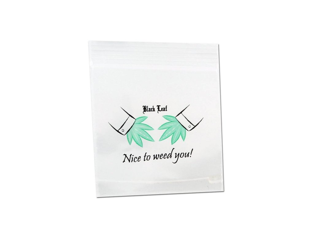 Uvítáme Vás do světa elegance s našimi Zip Bagy Black Leaf "Nice to weed you" 50µ strong! Uchovávejte své oblíbené konopné produkty svěží a bezpečné s našimi odolnými sáčky.